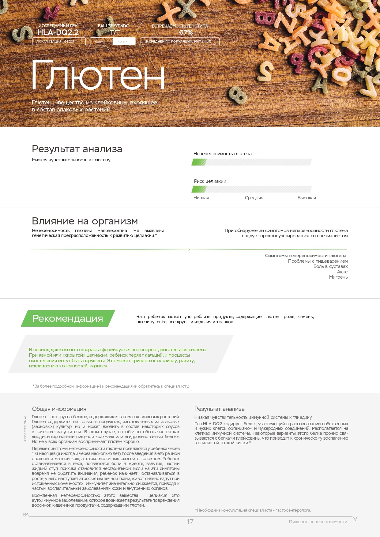 Помните, что помимо физических нагрузок, большую роль играет питание. Вы также можете пройти ДНК-тест на диету, который покажет, каких веществ не хватает в организме, какие организм усваивает лучше, а какие хуже и многое другое.